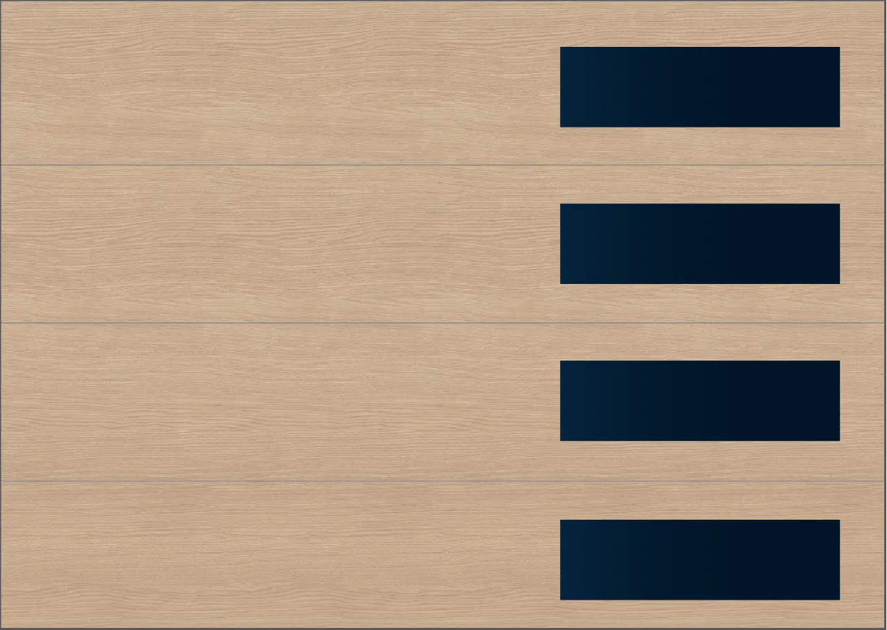 Изготовлен из высококачественного алюминиевого сплава 6063-T6 или предварительно обработанной стали с тиснением под дерево в сочетании с тонированным стеклом. В качестве изоляционного слоя используется пенополиуретан, который эффективно защищает от летней жары и сохраняет тепло зимой. Дизайн плоских панелей отличается минималистской эстетикой и простотой очистки. Совместимость с различными материалами для стеклопакетов обеспечивает удобство монтажа и обслуживания. Функция сегментного перемещения вверх позволяет максимально увеличить пространство гаража.